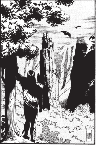 Nach diesem Erlebnis stiegen die Helden hinab ins Tal. Unter einer Schicht aus rotem Staub offenbarte sich ihnen ein tropisches Dschungeltal. Im Schutz der Dunkelheit suchten sie ein Lager im Unterholz, wo sie keiner finden würde.